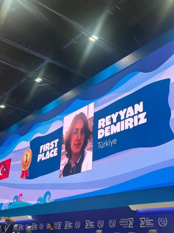 Yarışmanın ödül töreni, 19 Eylül 2025 tarihinde Dubai’de gerçekleştirilen 28. UPU Kongresi kapsamında yapıldı. Öğrencimiz Reyyan Demiriz, burada ülkemizi temsil ederek altın madalya ve sertifikasını aldı. Ayrıca organizasyon kapsamında düzenlenen etkinliklerde farklı ülkelerden gençlerle bir araya geldi.