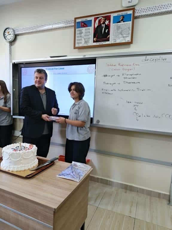 Bu uluslararası başarıyı kutlamak ve öğrencimizi onurlandırmak amacıyla okulumuzda özel bir etkinlik gerçekleştirildi. Önce Reyyan’ın sınıfında öğretmenleri ve arkadaşlarıyla pasta kesildi, ardından kendisine çeşitli hediyeler takdim edildi.