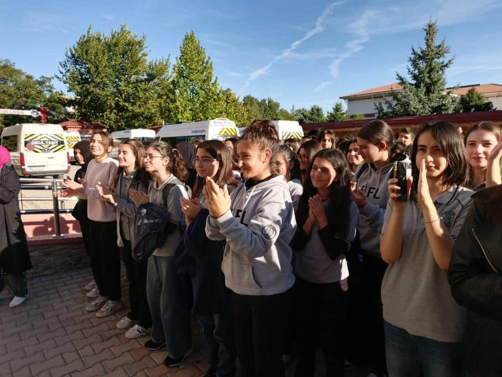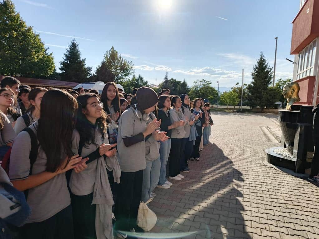 Daha sonra okul bahçesinde düzenlenen törende öğrencimiz tüm okul arkadaşlarının coşkulu alkışları eşliğinde eserini bir kez daha seslendirdi. Programın sonunda öğrencimize tekrar hediyeler verildi.